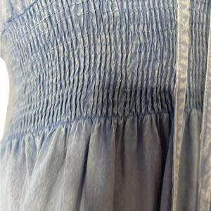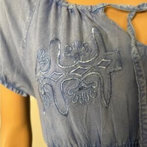 J Gee Dress Womens SP Blue Midi Short Sleeve Embroidered Smocked Tiered Boho