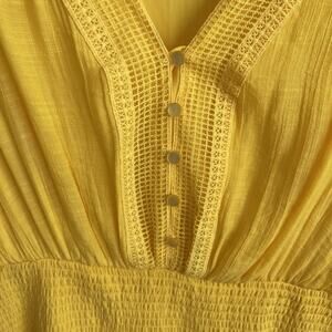 J Gee Plus Size 2X Yellow Puff Sleeves Tiered Smocked Midi Dress Resort Sundress