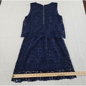 The J Gee Tiered Eyelet Lace Dress in navy blue is a stylish and versatile option for women in size XL. This sleeveless dress features a round neckline and a zip closure, making it perfect for both party occasions and casual wear.