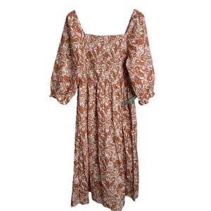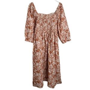 J. Gee Womens Cotton Broadcloth Orange Paisley Midi Dress PXL Cottagecore Demure