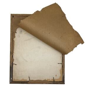 This offset litho print, published by Sidney Z. Lucas in New York City sometime between 1940-1960, depicts three parakeets. Printed on inexpensive paper and has tanned a bit. However, the colors are beautiful. Picture measures 5-1/2" wide by 7-1/2" tall. Frame measures 7-3/4" wide x 9-3/4" tall. Picture is surrounded by a mirror effect. There is a thin brown paper adhered to the back of the frame and is coming off as shown in pictures. Frame is held together by a single mail in each corner of the frame as well as used to secure items into frame. Item will be well packaged and protected when shipping.