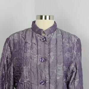 J H Collectibles Satin Jacket Single Breasted Purple Floral Asian Damask Size L