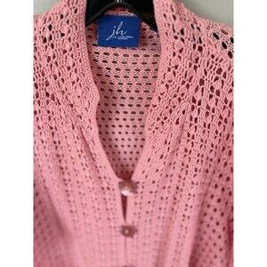 J H Collectibles Womens Size 2X Crochet Cardigan Linen Cotton Blend Pink Organic