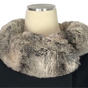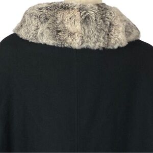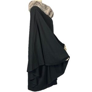 J. Hilary black cape coat poncho black with fur trim collar. The interior is lined, the sleeves are not lined. Side seam pockets. Single button closure at neckline. Please see pictures for more details. Measurements taken with item laying flat. Approximate measurements: