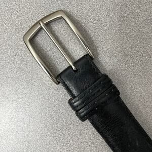 This listing is for a J Hiburn Mens Black Leather Belt. Silvertone brass buckle. Approx 1.25in wide. Handcrafted in the USA.