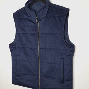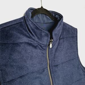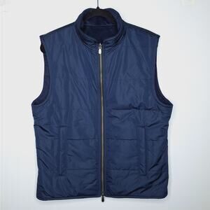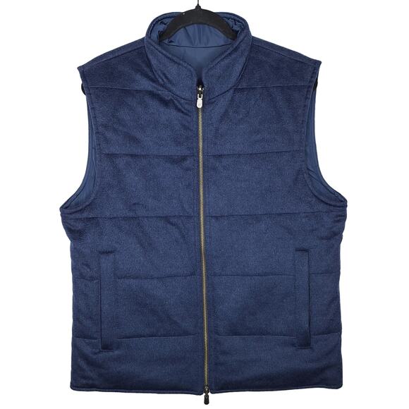 J. Hilburn Wool Puffer Vest 41R Medium Large Reversible Navy Blue Full Zip