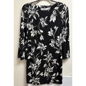 J Howard Black and White with Gold Trim Floral Design Knee Length Dress Size 6