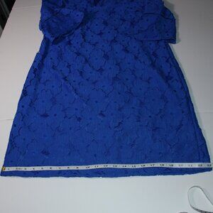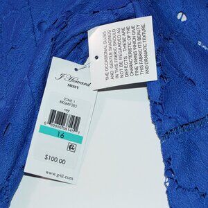 J Howard Blue Floral Lace Overlay Dress Size 16 V-Neck with Ruffled Sleeves