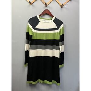J Howard Dress Womens Large Knit Sweater Long Sleeve Geeen Black Gray Cream