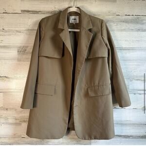 J. ING Contemporary Belted Blazer Jacket Trench Coat Relaxed Fit Tan XS