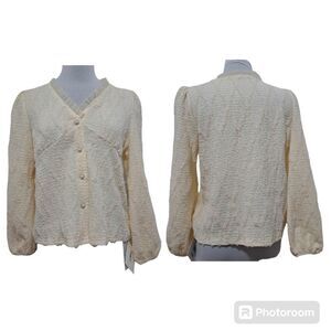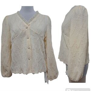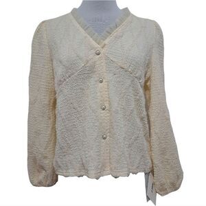J. ING Lace Trim V Neck Button Front Blouse Small/Medium Cream NWT