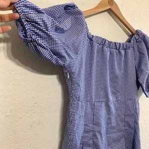 J. ING Off-Shoulder Gingham Blue Midi Fit & Flare Dress NWT Womens Size Large