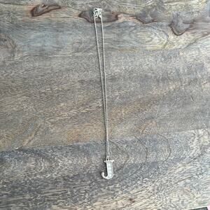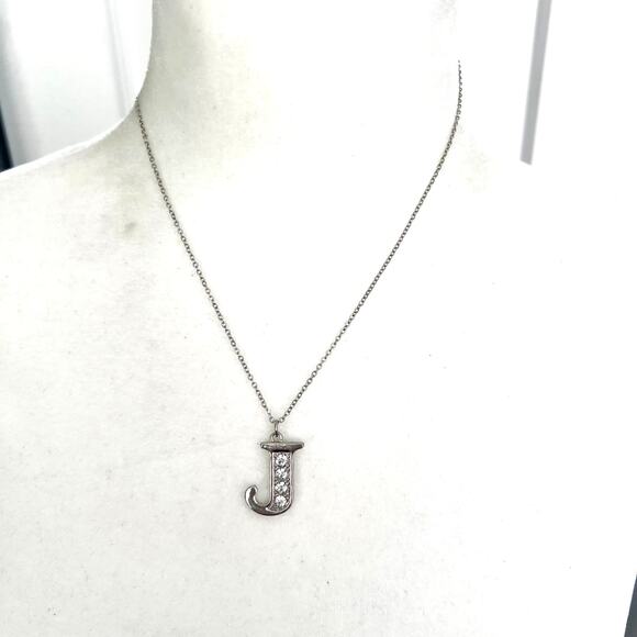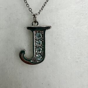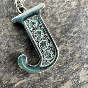 J Initial Rhinestone Studded Adjustable Pendant Necklace on Silver Tone Chain