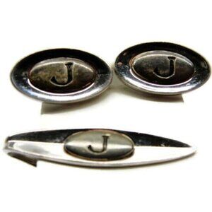 "J" Initial Shields Set Engraved Letter Oval Silver T Personalized Cufflinks Vtg