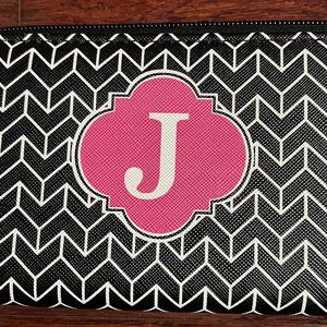 * Chevron Black/White Design with Pink Letter "J" Initial Printed on Front