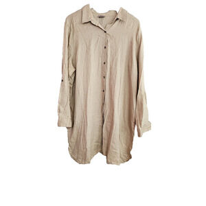 J.JILL 100% Linen Khaki Long Line Sleeve Button Down Shirt Dress Tunic Top XL