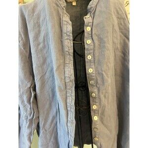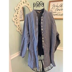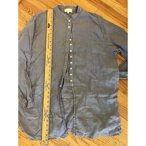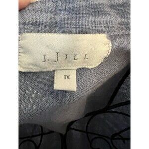 J. JILL 1X Blue Linen Button Down Shirt Lagenlook Artsy Boho