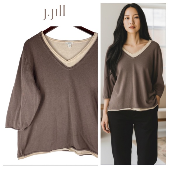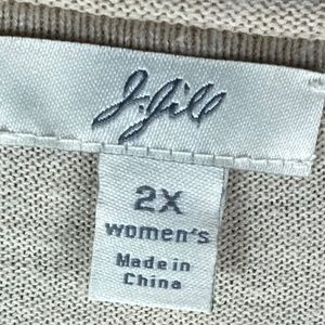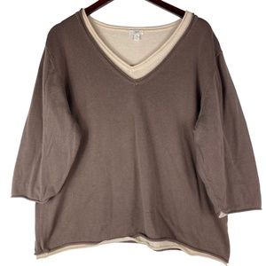 J JILL 2X 18 20 XXL Sweater Pullover V-Neck Brown Tan Casual Stretch
