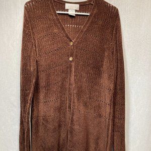 J JILL BUTTON FRONT BROWN KNIT CARDIGAN SIZE M