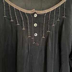 J. JILL Black Sheer Long Sleeve Peasant Top Size M