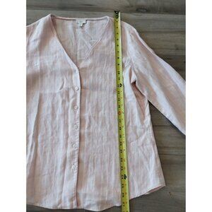 This chic J JILL Blush Pink Jacquard Linen Buttoned V Neck Long Cuffed Sleeve in size S offers a classic yet stylish look. Made from 100% linen, it's breathable and comfortable for all-day wear.