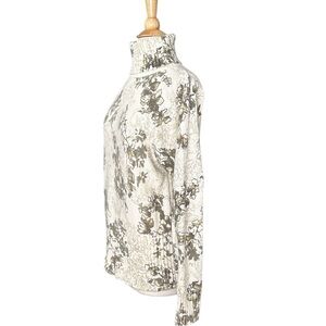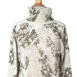 J. JILL Botanical Print Chunky Sweater Turtleneck Cotton Angora Blend, Large