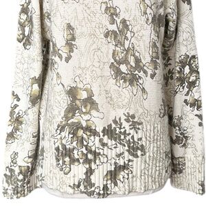 J. JILL Botanical Print Chunky Sweater Turtleneck Cotton Angora Blend Size Large