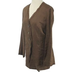 J. JILL Brown 100% Linen Scallop Edge Tunic Jacket