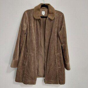 J. JILL BROWN Cotton HERITAGE TUMBLED CORD COAT Corduroy Zip Jacket Size Medium.