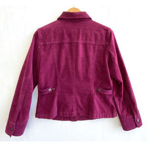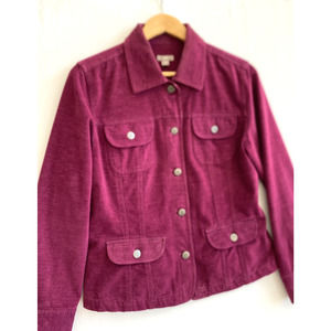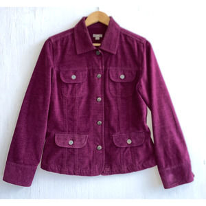 J JILL Burgundy Velvet Button up Casual Jacket Pockets Size S