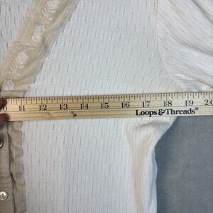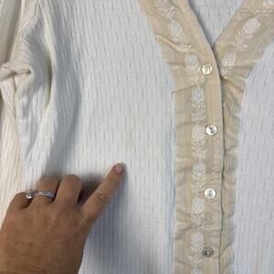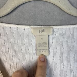 J. JILL Cardigan Sweater Women Small White Ribbed Eyelet Embroidered 100%Cotton