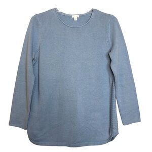 J. JILL - Cotton & Merino Wool Blend Light Blue Round Neck Long Sleeve Tunic Length Sweater with Ribbed Side Insets - Size Medium. No visible flaws. Excellent pre-owned condition. LIKE NEW!