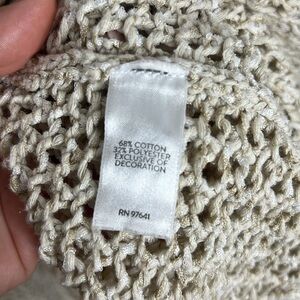 J. JILL • Metallic weave Hooded open knit Crochet Fringe Beachy Tassel Tie Coverup Open Resort wear Cardigan