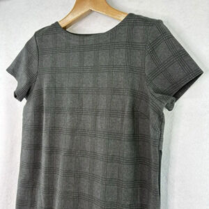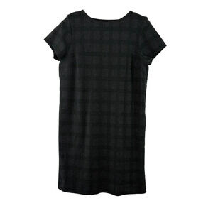 J JILL Dress Medium Window Pane Ponte Knit Short Sleeve Pullover Stretch Shift