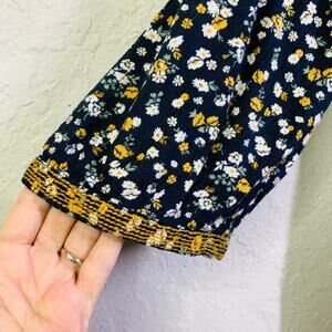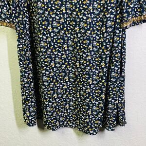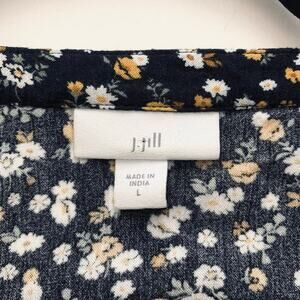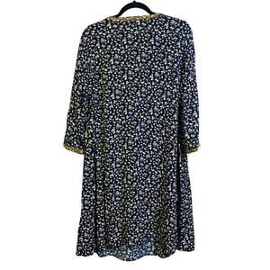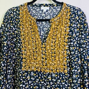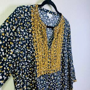 J. JILL Dress Tunic Knee Length Floral VNeck Gold Embroidered Detail Tunic Boho