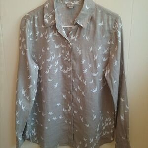 J JILL FLYING BIRDS 100% LINEN BUTTON FRONT SHIRT