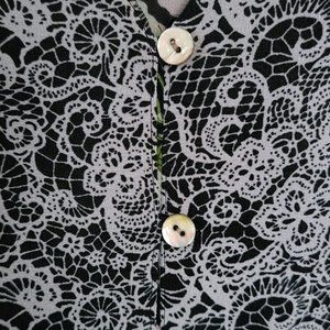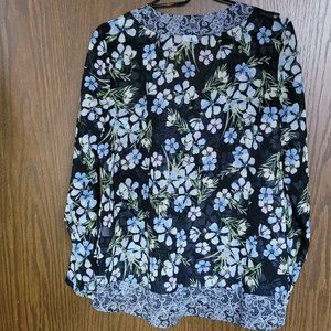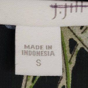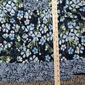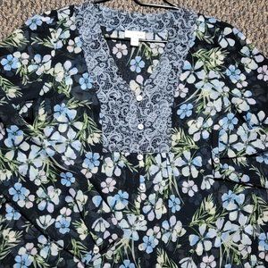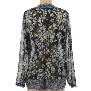 J. JILL Floral Lace Print Button Front Blouse Sheer Long Sleeve Navy Blue Small