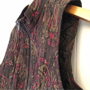 J. JILL Heritage Quilted Vest Brown & Red Paisley Print