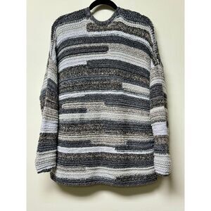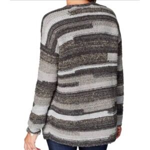 J. JILL Intarsia Cardigan Sweater Chunky Textured Knit Gray, Sz LP