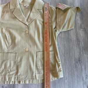 J. JILL Light Green Light Cotton Textured Unlined Jacket, Floral Flip Cuffs Sz 8
