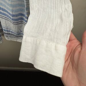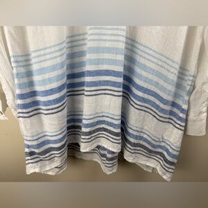 J. JILL Linen Blend Large White Blue Striped Pleated Tunic Top Coastal Beach
