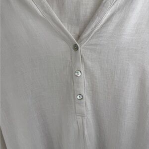This linen blend blouse is an excellent preowned condition. Please see photos for details and measurements.