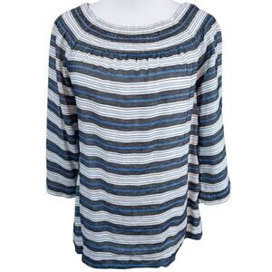 J. JILL Linen Blend Smocked Blouse Shirt Top Small Peasant Stripes Casual Travel