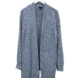 J. JILL Long Cardigan Size XL Petite Blue Heather Open Front Duster Cotton Blend