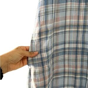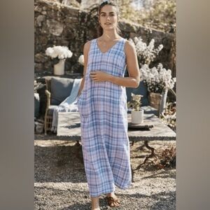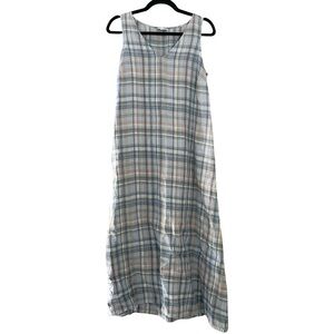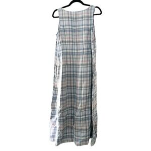 J JILL Love 100% Linen Plaid Sleeveless Maxi Dress Blue Coastalcore Sz S