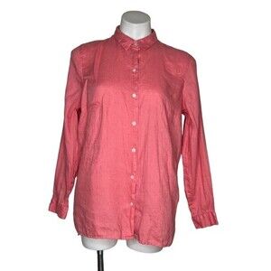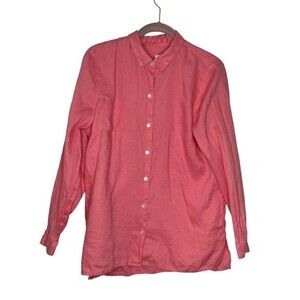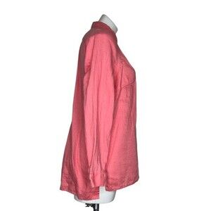 J JILL Love Linen Button Up Shirt Tunic Pink Coral Size Medium