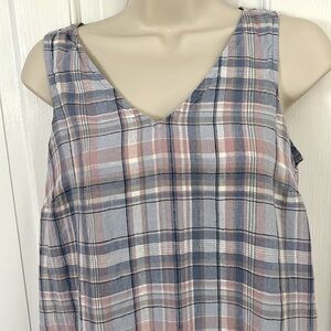 J. JILL Love Linen Madras Maxi Pastel Plaid Tank Pullover Dress PSmall Beachy