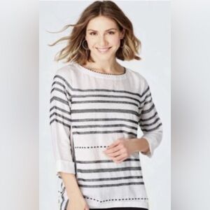J. JILL Love Linen Striped Tunic size L, 3/4 sleeves, Made in India, white/black
