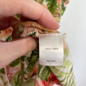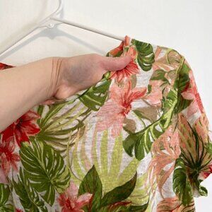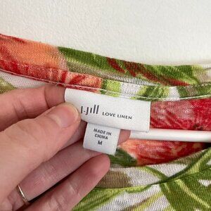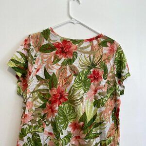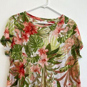 J. JILL Love Linen Tropical Floral Tie Front Tee White Green Short Sleeve Blouse