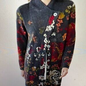 J. JILL MADISON FLORAL fall asymmetrical button SWEATER COAT - SIZE 2XL NWOT